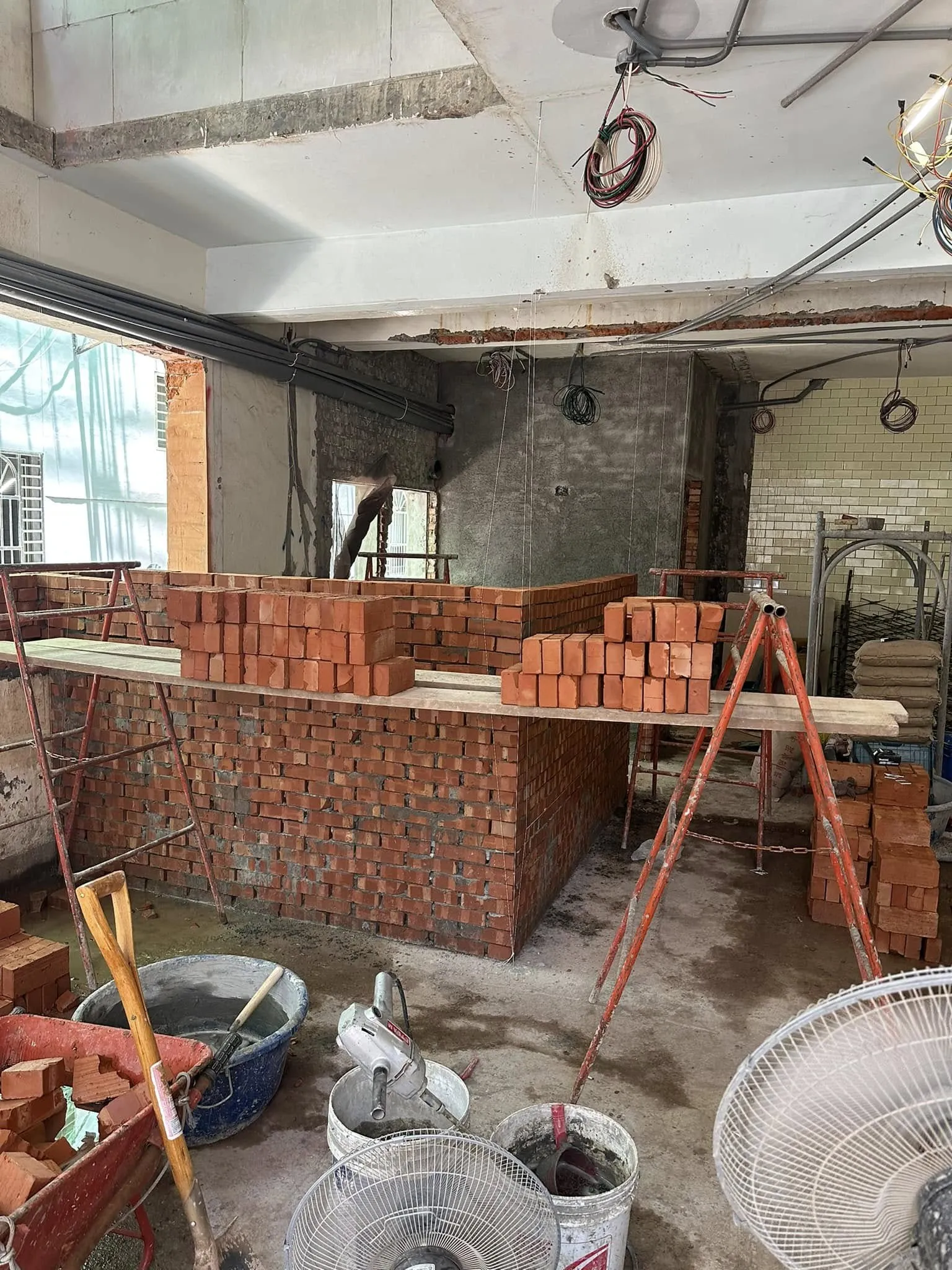 > 水田街透天-隔間牆疊磚